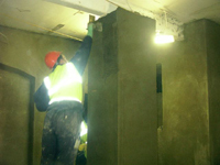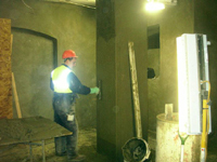 The rising damp to the internal walls appears to be due to little evidence of an effective damp proof course. The ground water penetration to the perimeter walls is being caused by external ground levels being much higher than the internal basement floor level together with a high water table in this area affecting the basement solid floor. Renderseal Ltd were awarded the contract by Main Contractor Sames Plc to undertake the damp/waterproofing contract in accordance with the design/specification given by the Ettwein Bridges Architects & technical advice given by Sika Ltd.