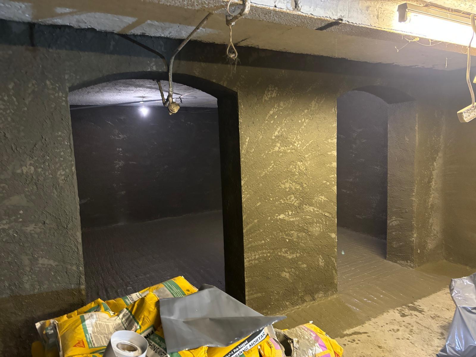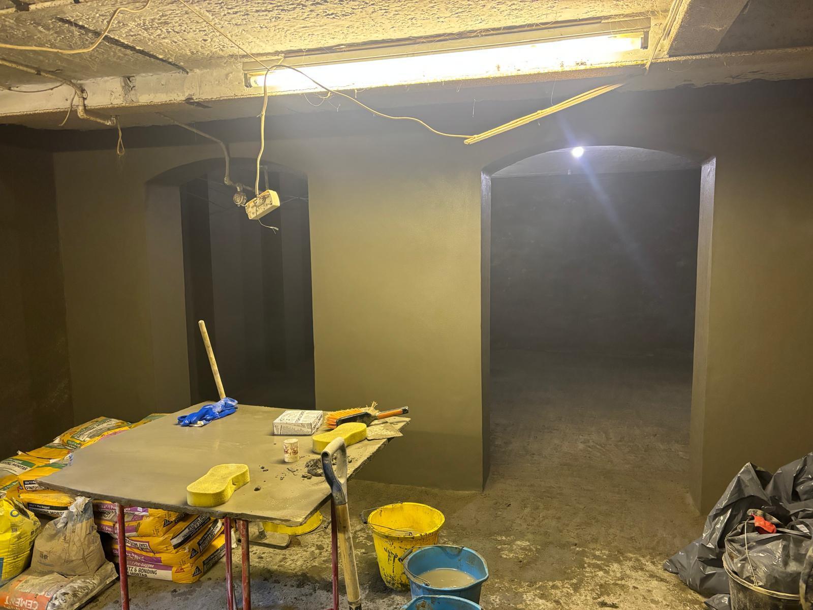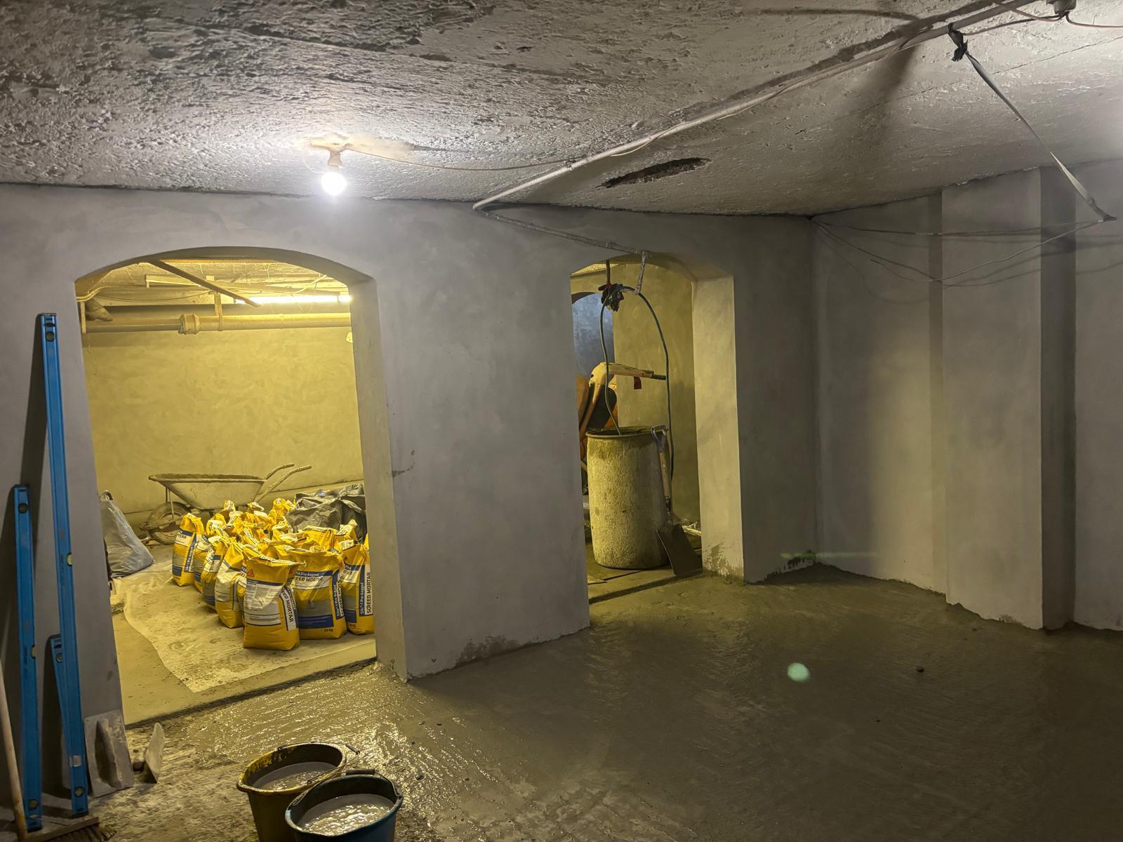 The Sika pre bagged system which comprises of layers of Spritz, Render & Finish was applied to the walls following the exact specification and a Sika-1 Spritz and Bonding Mortar coat was laid onto the floor as well as a final Sika-1 Screed Mortar coat. Ultimately, the waterproofing process took approximately 10 days.